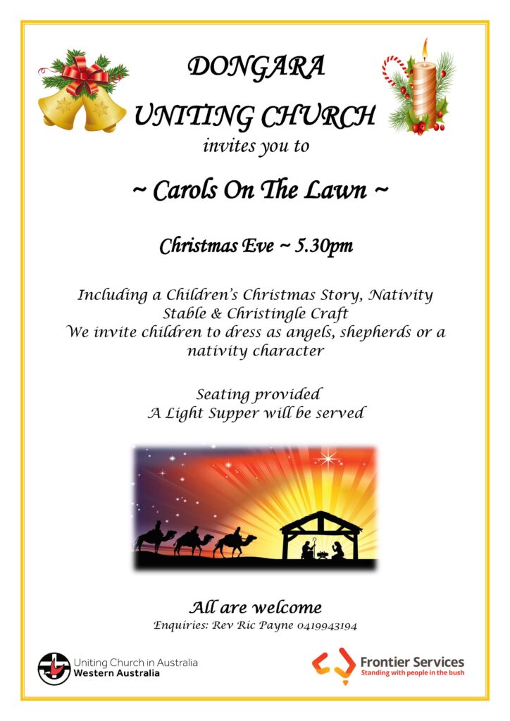 Dongara Uniting Church invites you to Carols On The Lawn on Christmas Eve starting at 5.30pm