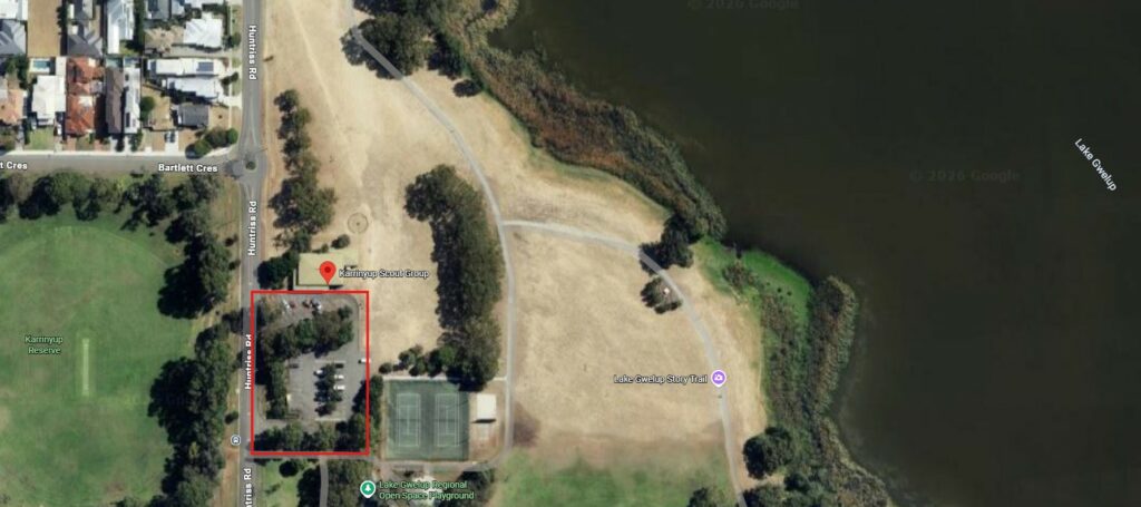 We will be meeting near the Karrinyup Scout Group building, 45 Huntriss Rd, Gwelup.