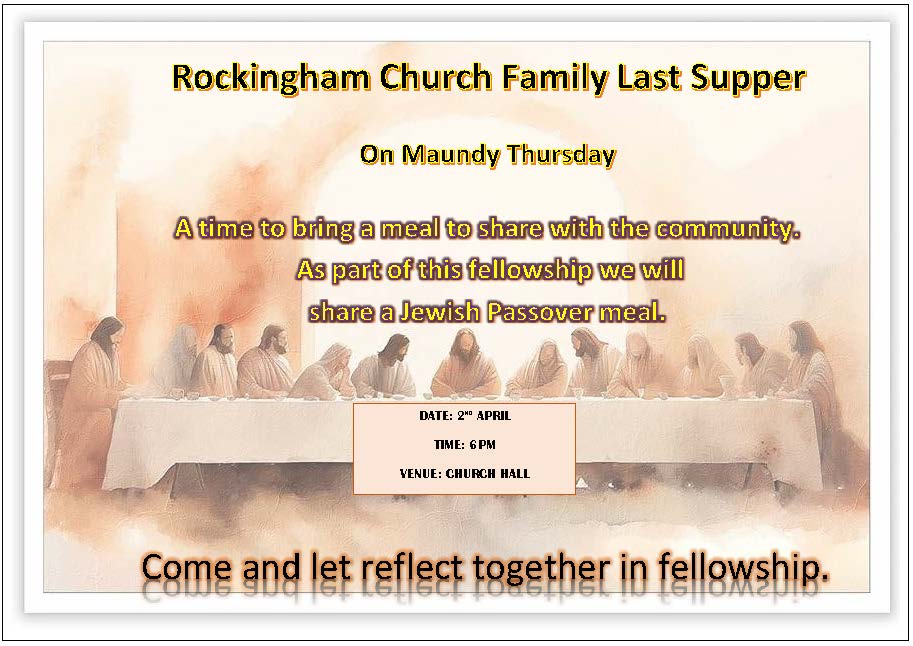 Join us at Mount Pleasant Uniting Church on Maundy Thursday, 2 April at 7.00pm for a prayerful time of reflection and communion.