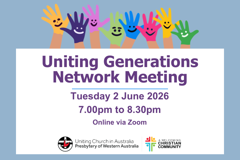 The next meeting of the Uniting Generations Network is on Tuesday 2 June at 7.00pm - Online via Zoom.