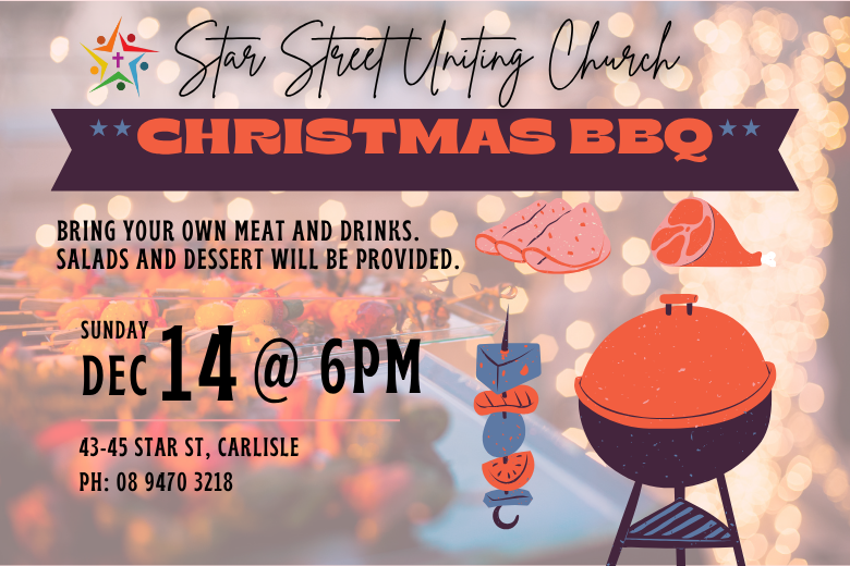 Everyone is invited to a Christmas BBQ at Star Street Uniting Church on Sunday 14 December beginning at 6pm.