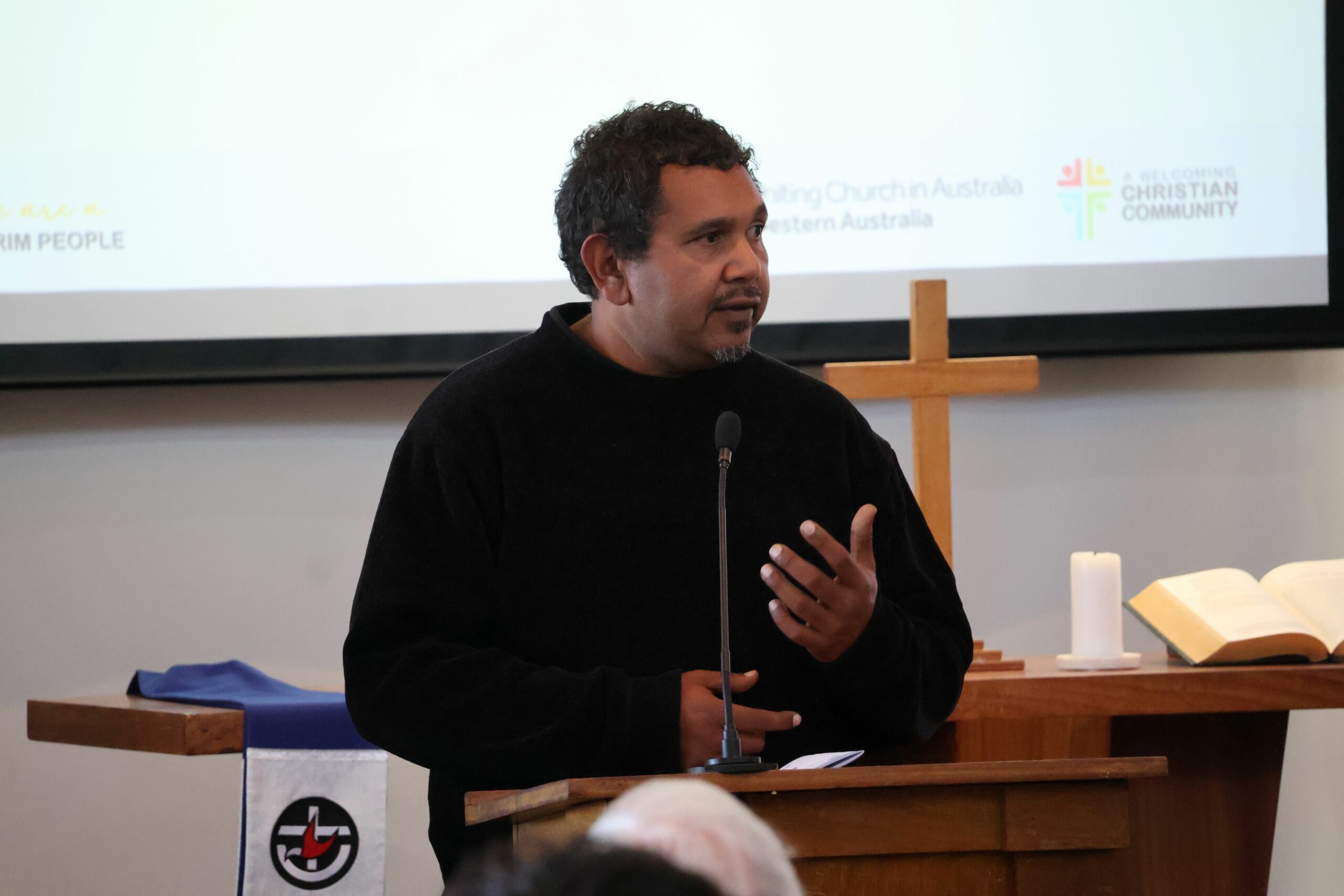 The service began with Rev Mitchell Garlett offering a Welcome to Country in language, welcoming the gathered people to Wadjuk Nyungar land. In his Welcome Mitchell said, “As we journey may we continue to listen to one another, not only with our ears, but with our hearts, for a better journey not only for today, but for tomorrow too, for generations to come.”